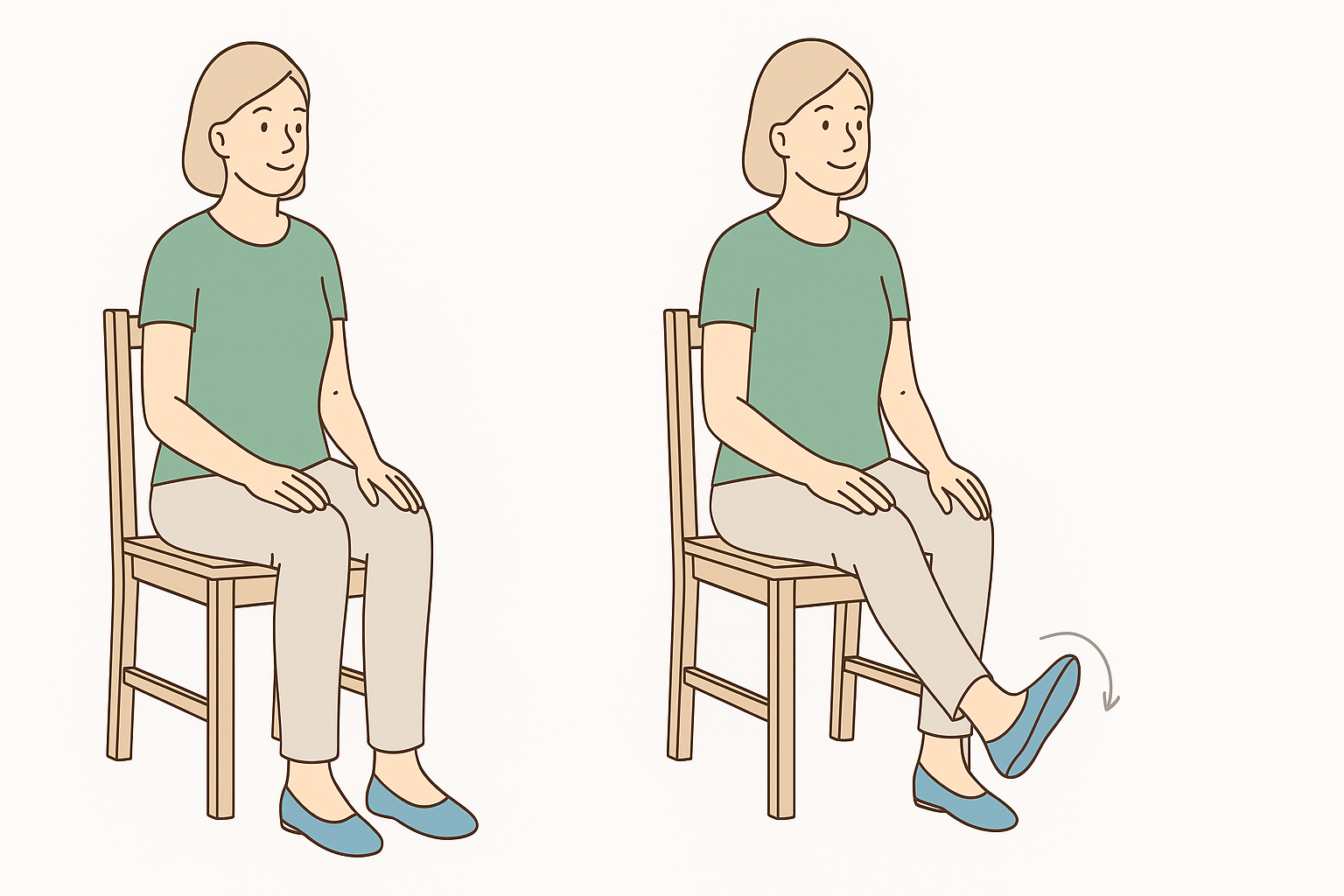 De enkelrol (ankle roll) is een hele goeie oefening: veilig, eenvoudig en ook zittend uit te voeren dus geschikt voor minder mobiele of oudere mensen.